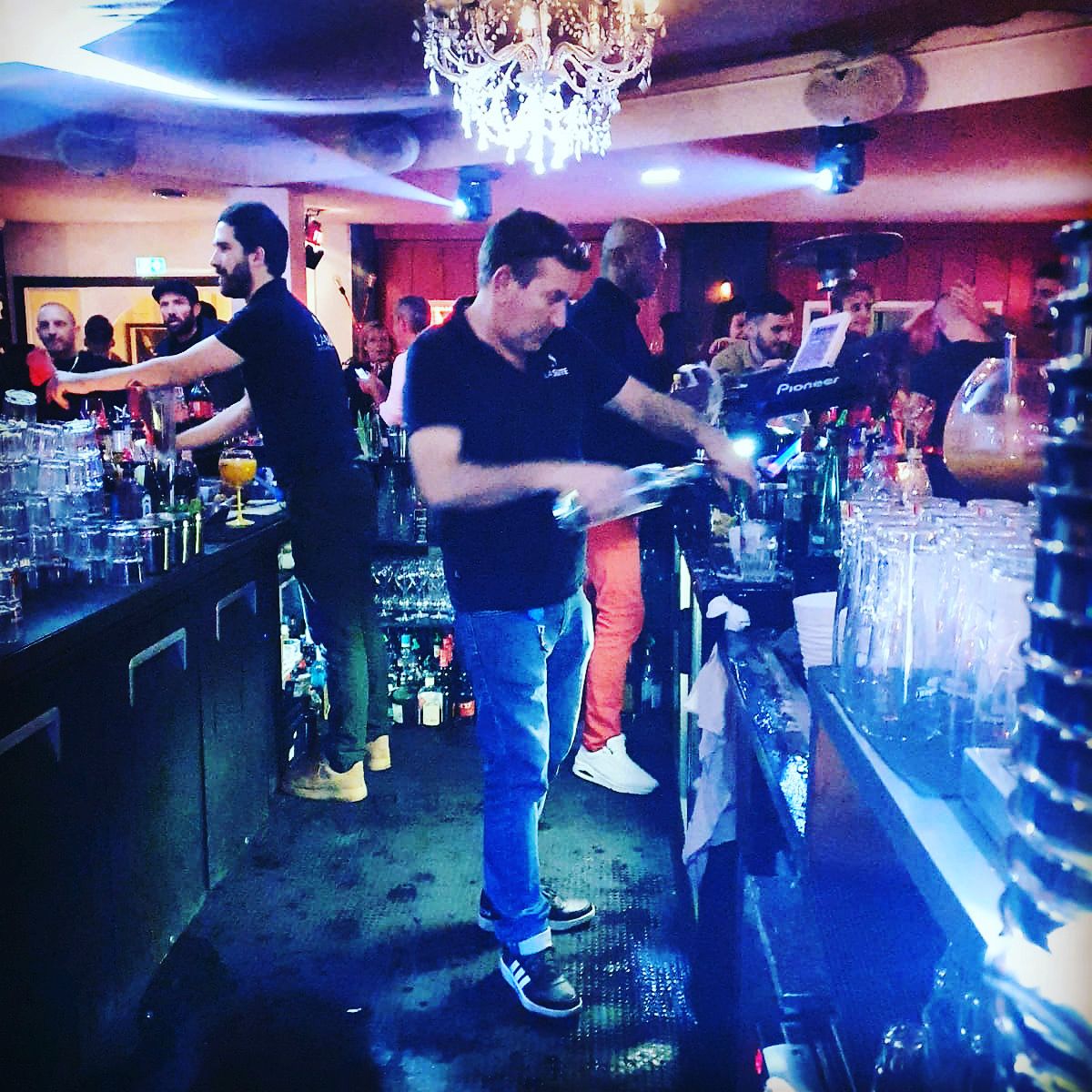 Rhum, Malibu, Jus d’ananas, mangue, fruits de la passion, sirop de framboise.